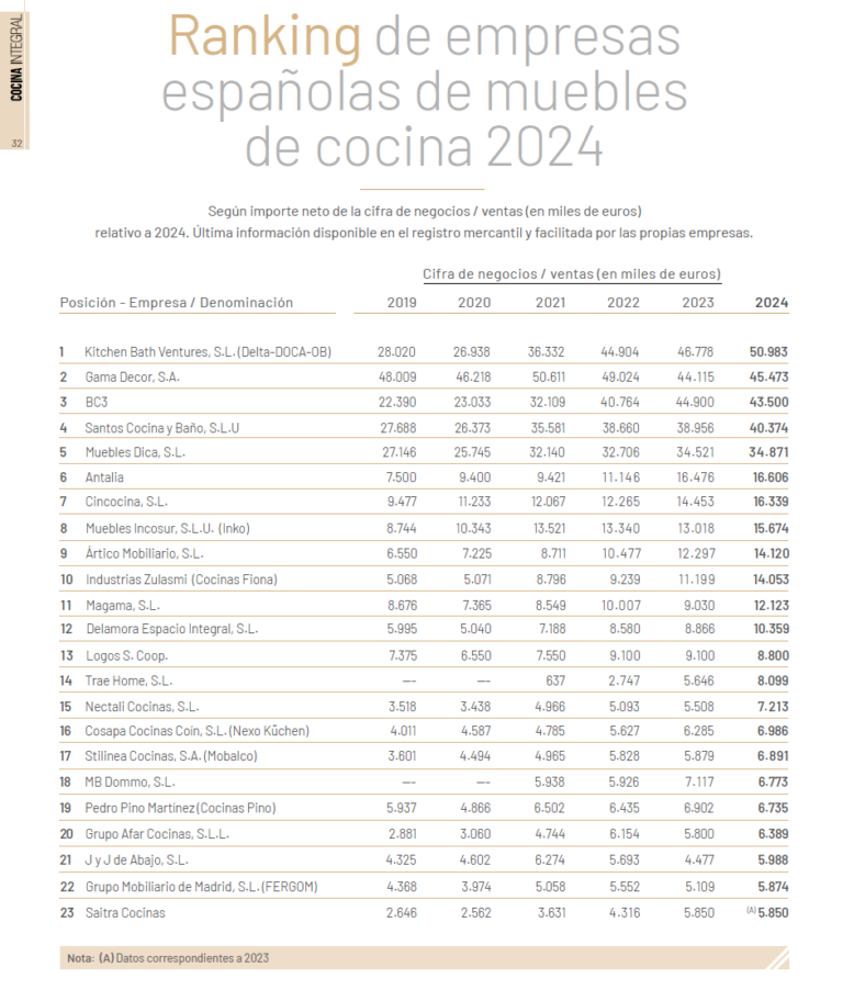 Según el último ranking publicado por Cocina Integral, nos consolidamos como el grupo fabricante de cocinas líder en España, reforzando nuestra posición como uno de los grandes referentes del sector y ampliando la distancia frente a los siguientes actores del mercado.